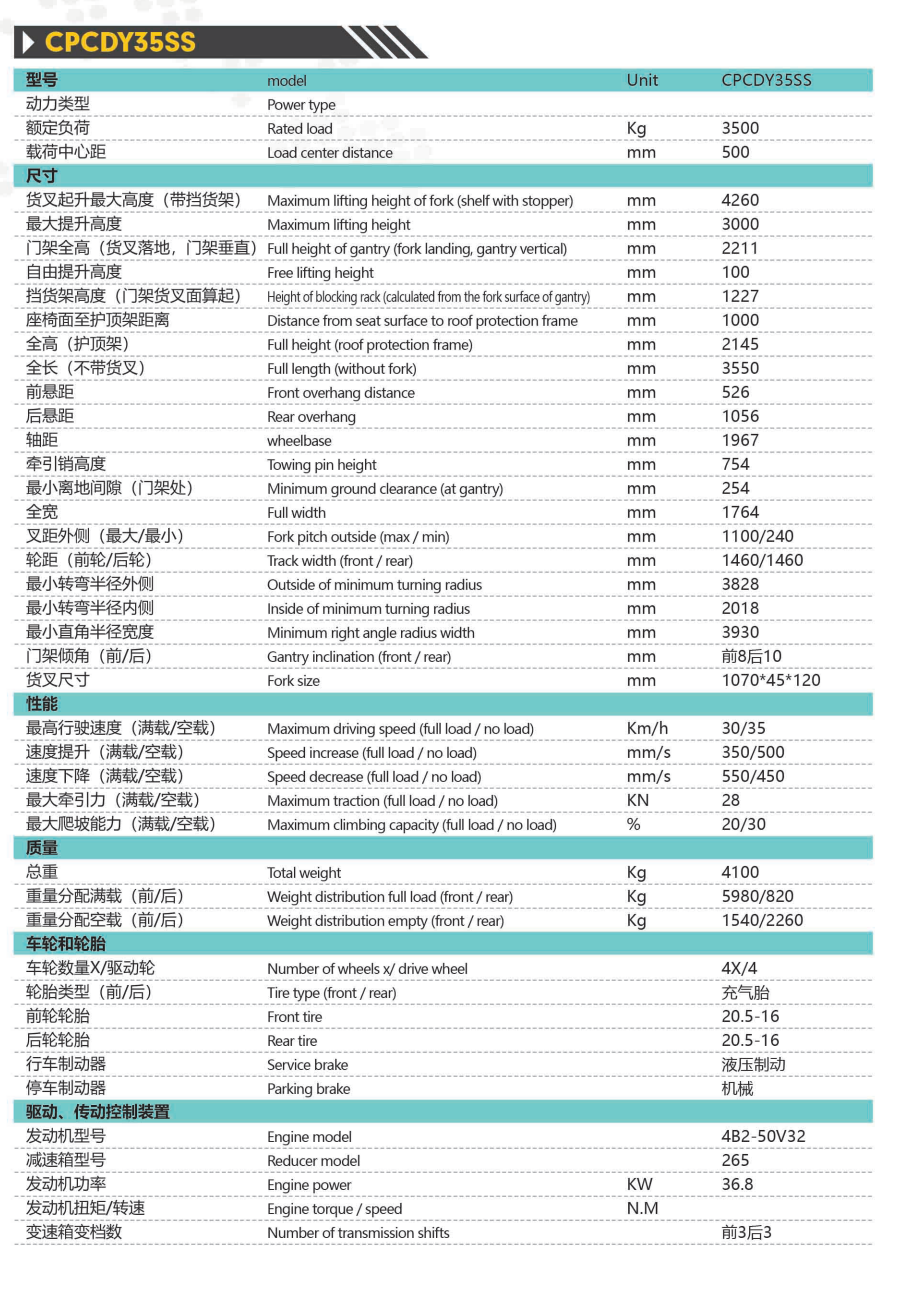 • 產品名稱: CPCDY3.5S短軸地下室款可拆卸駕駛室越野叉車